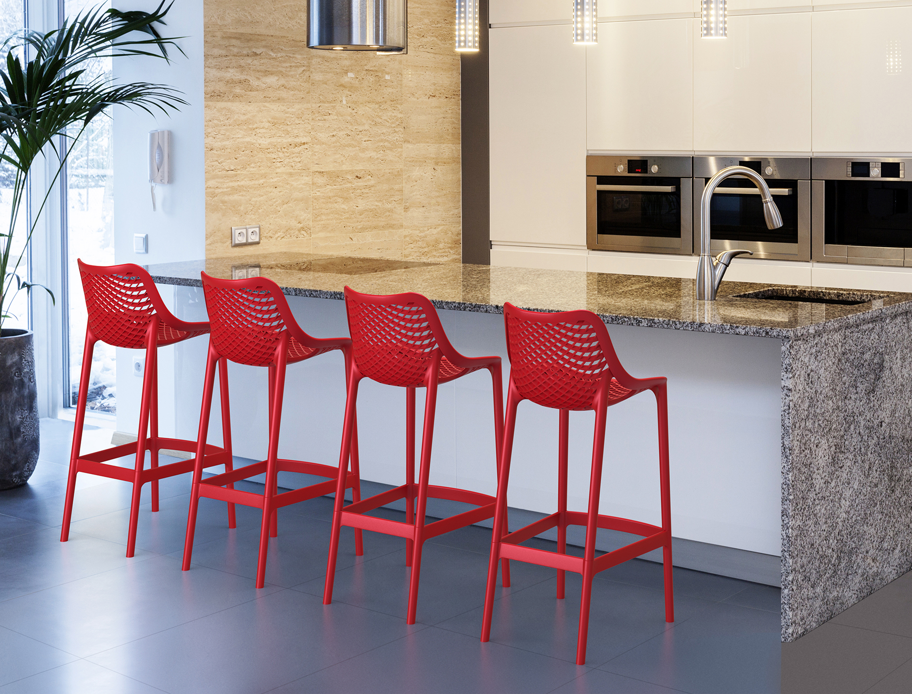 İkinci jenerasyon gaz enjeksiyon sistemiyle polipropilen ve cam elyaf karışımından üretilen Air Bar Taburesi, istiflenebilmesi, doğal renkleri ve kendine özgü görüntüsüyle hem iç mekan hem de dış mekan kullanımı için ideal bir üründür.