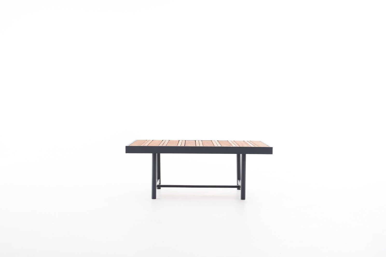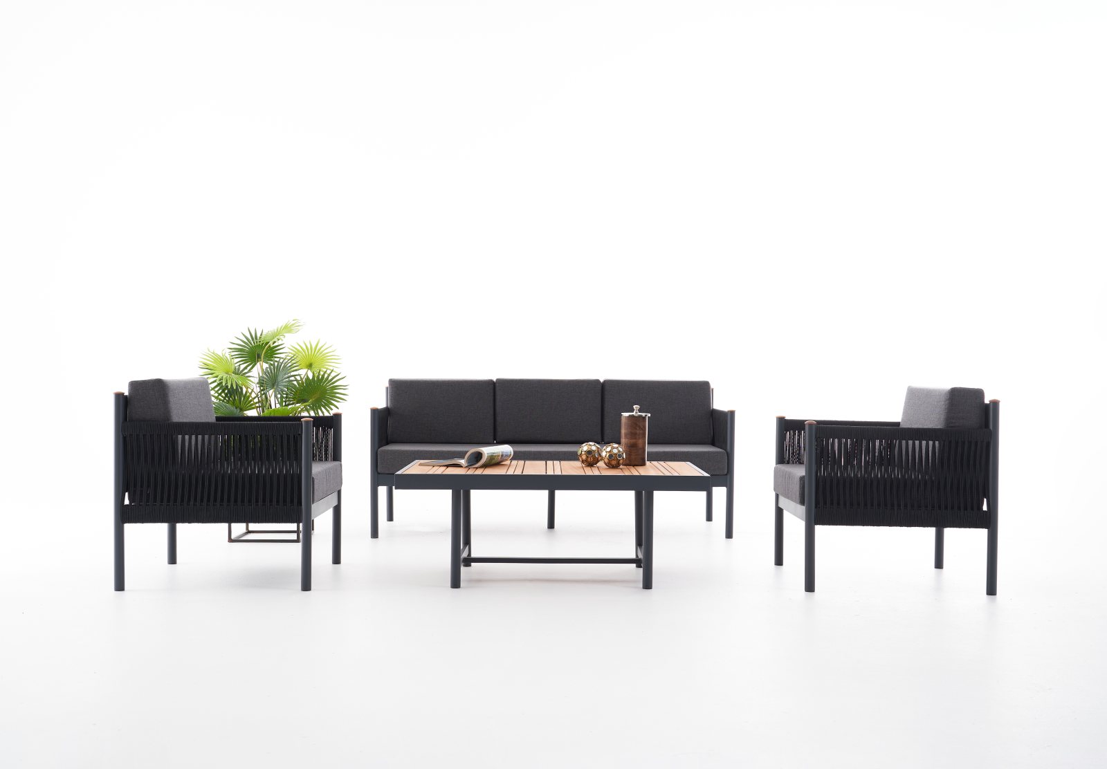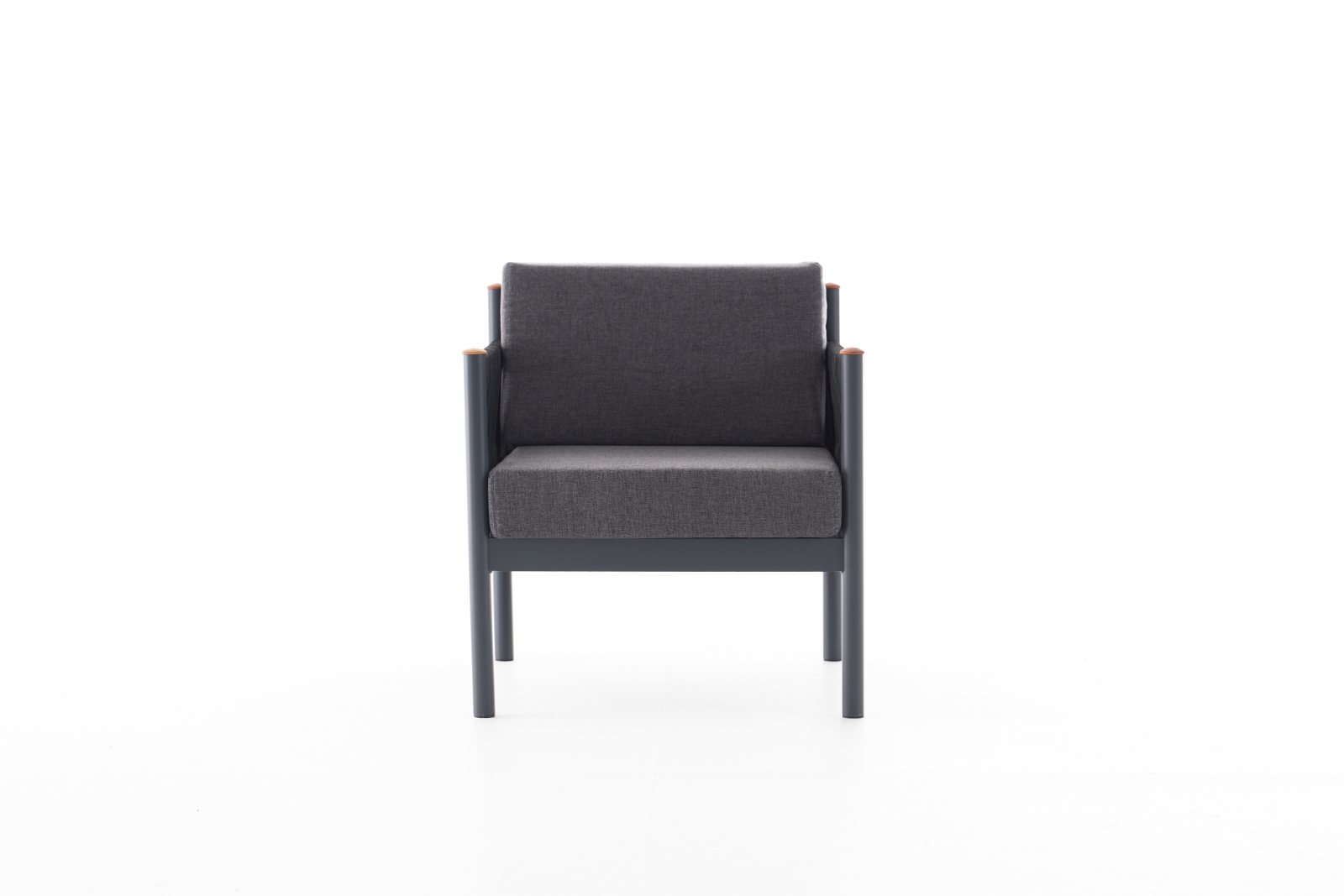 Takımın silindirik ayaklarıyla koltukların kenarlarındaki düz hatlar birbirini tamamlıyor. Ahşap ve metalin müthiş uyumunu sunan sehpası da bu zarafete son dokunuşu gerçekleştiriyor.