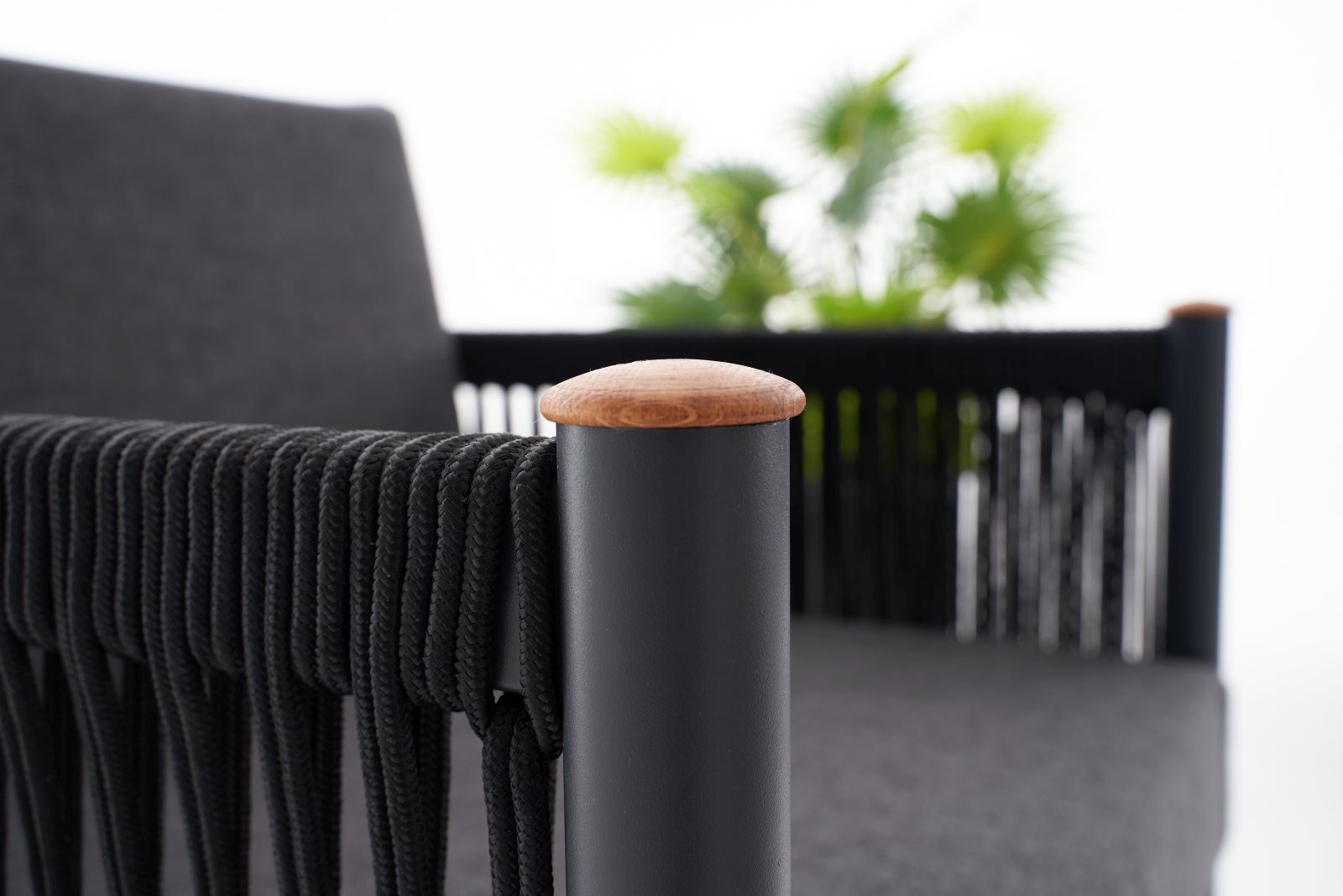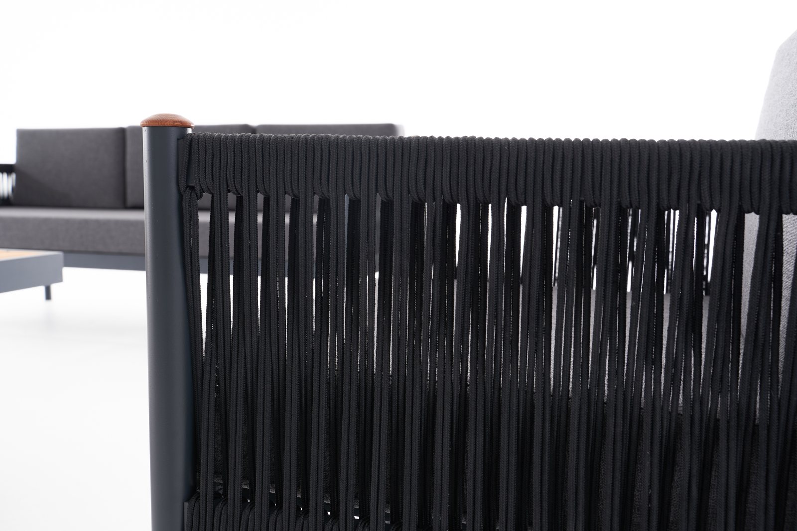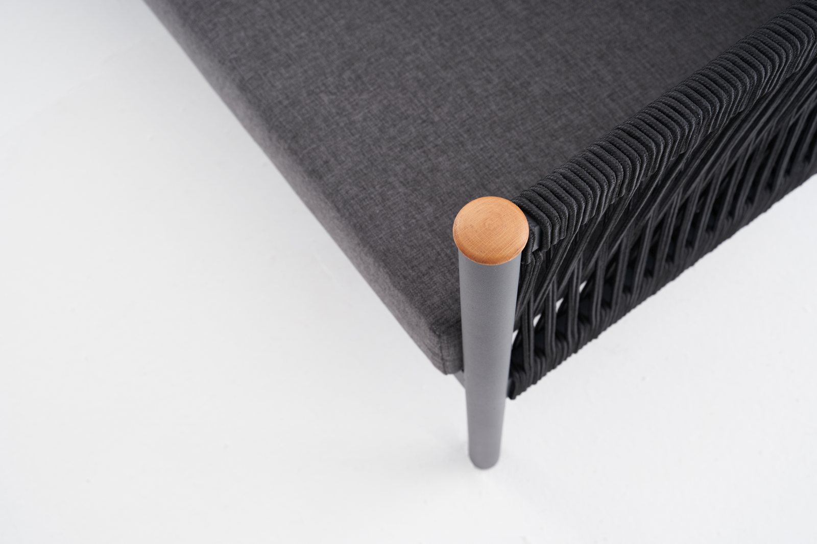 Takımın silindirik ayaklarıyla koltukların kenarlarındaki düz hatlar birbirini tamamlıyor. Ahşap ve metalin müthiş uyumunu sunan sehpası da bu zarafete son dokunuşu gerçekleştiriyor.