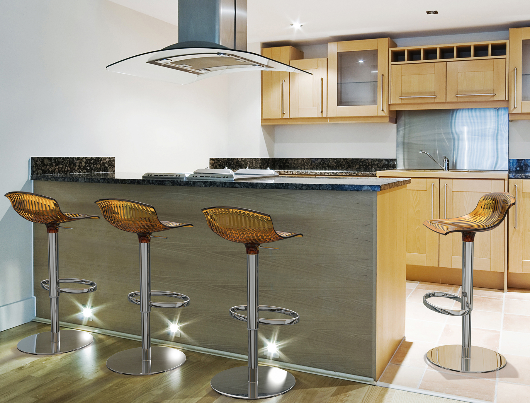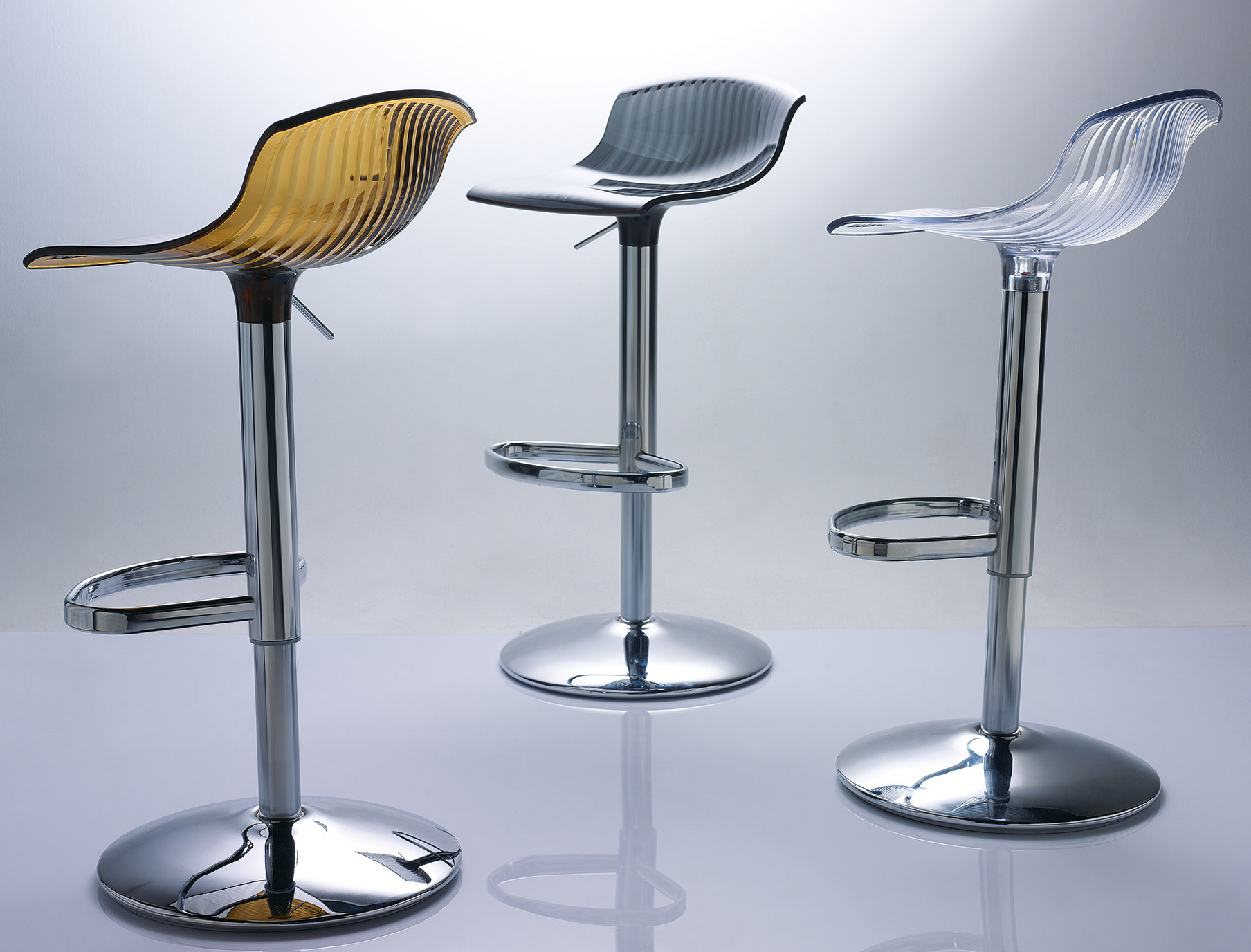 Paslanmaz gövdeli dönebilen oturum alanlı polikarbonat hammaddeden üretilen amortisörlü bar taburesi rahatlığı ve kendine özgü çizgisiyle iç ve dış mekan kullanımı için ideal bir üründür.