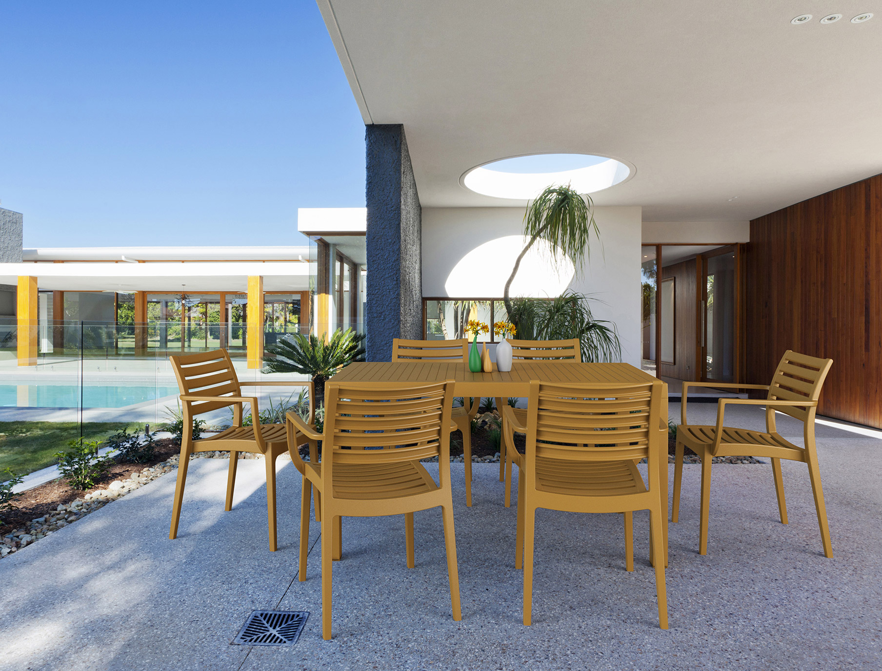 İkinci jenerasyon gaz enjeksiyon sistemiyle polipropilen ve cam elyaf karışımından üretilen dizayn koltuk Artemis, istiflenebilmesi, doğal renkleri ve kendine özgü görüntüsüyle hem iç mekan hem de dış mekan kullanımı için ideal bir üründür.