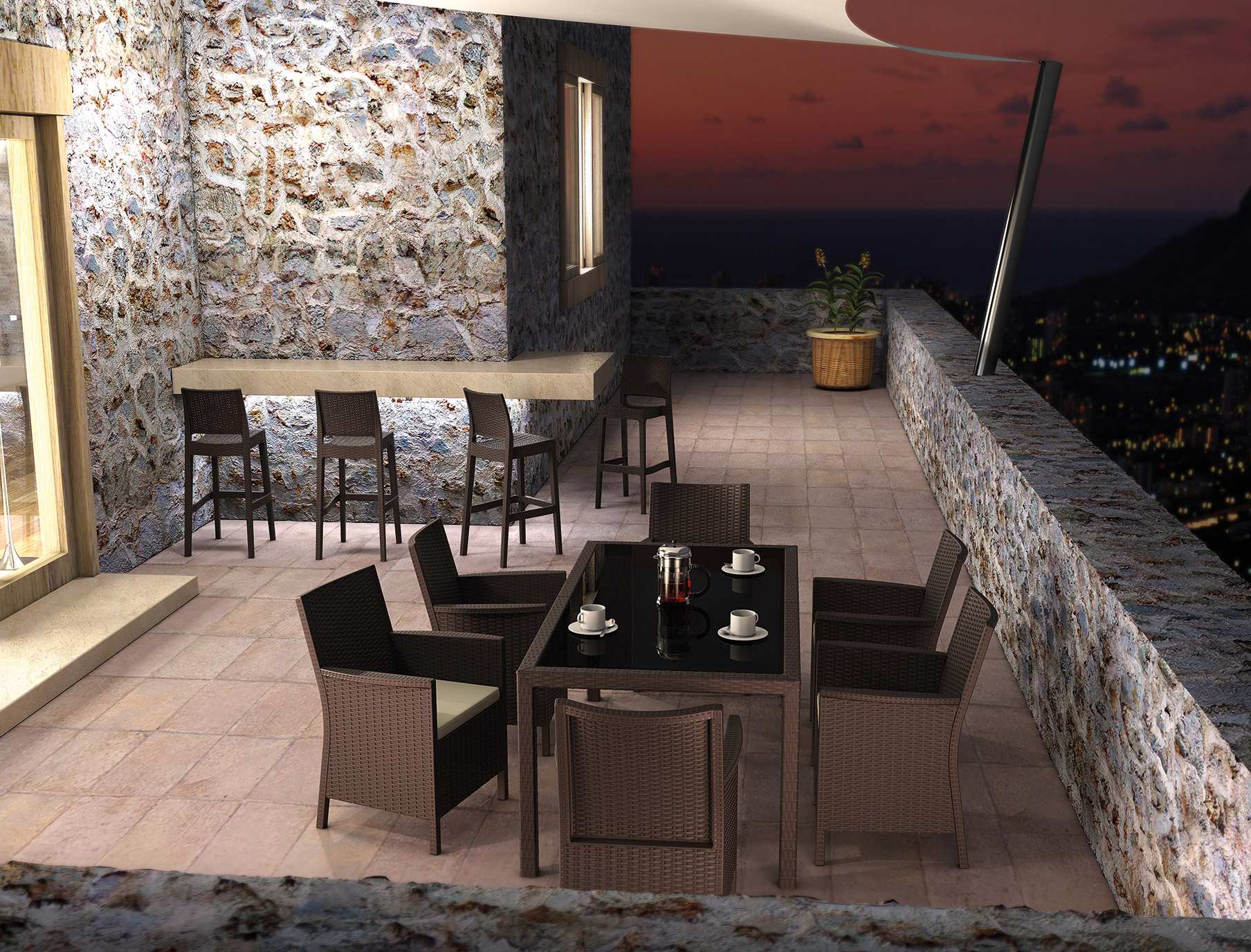 Polipropilen ve cam elyaf karışımdan mamul California koltuk, demonte, rattan efektli ve mat yüzeylidir.
