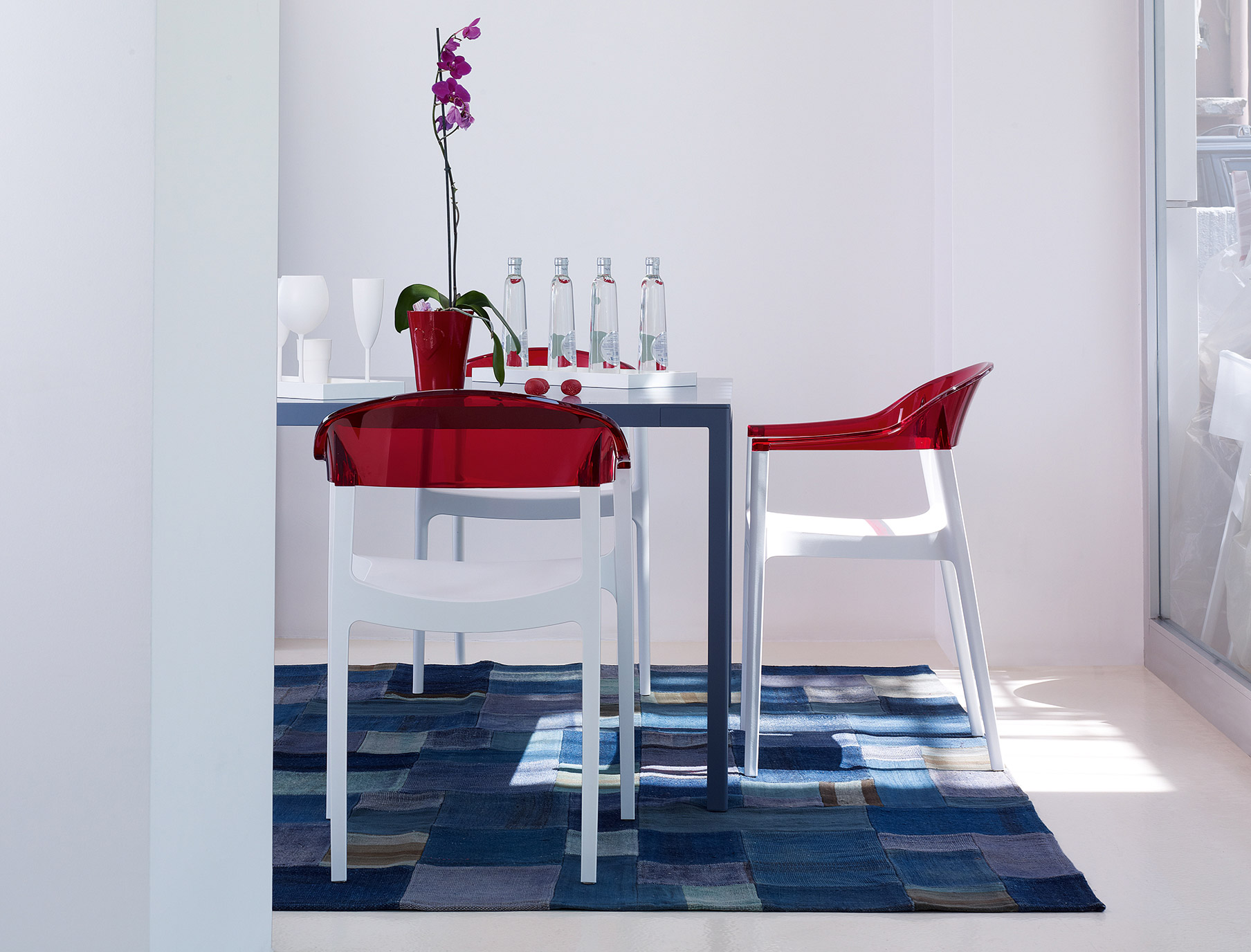İkinci jenerasyon gaz enjeksiyon sistemiyle polipropilen cam elyaf karışımı oturum ve polikarbonat sırt birleşimiyle üretilen dizayn koltuk Carmen istiflenebilmesi, doğal renkleri ve kendine özgü tasarımıyla hem iç mekan hem de dış mekan kullanımı için ideal bir üründür.