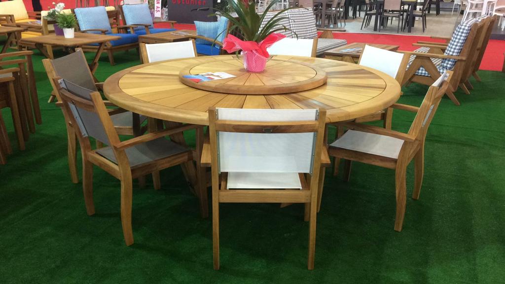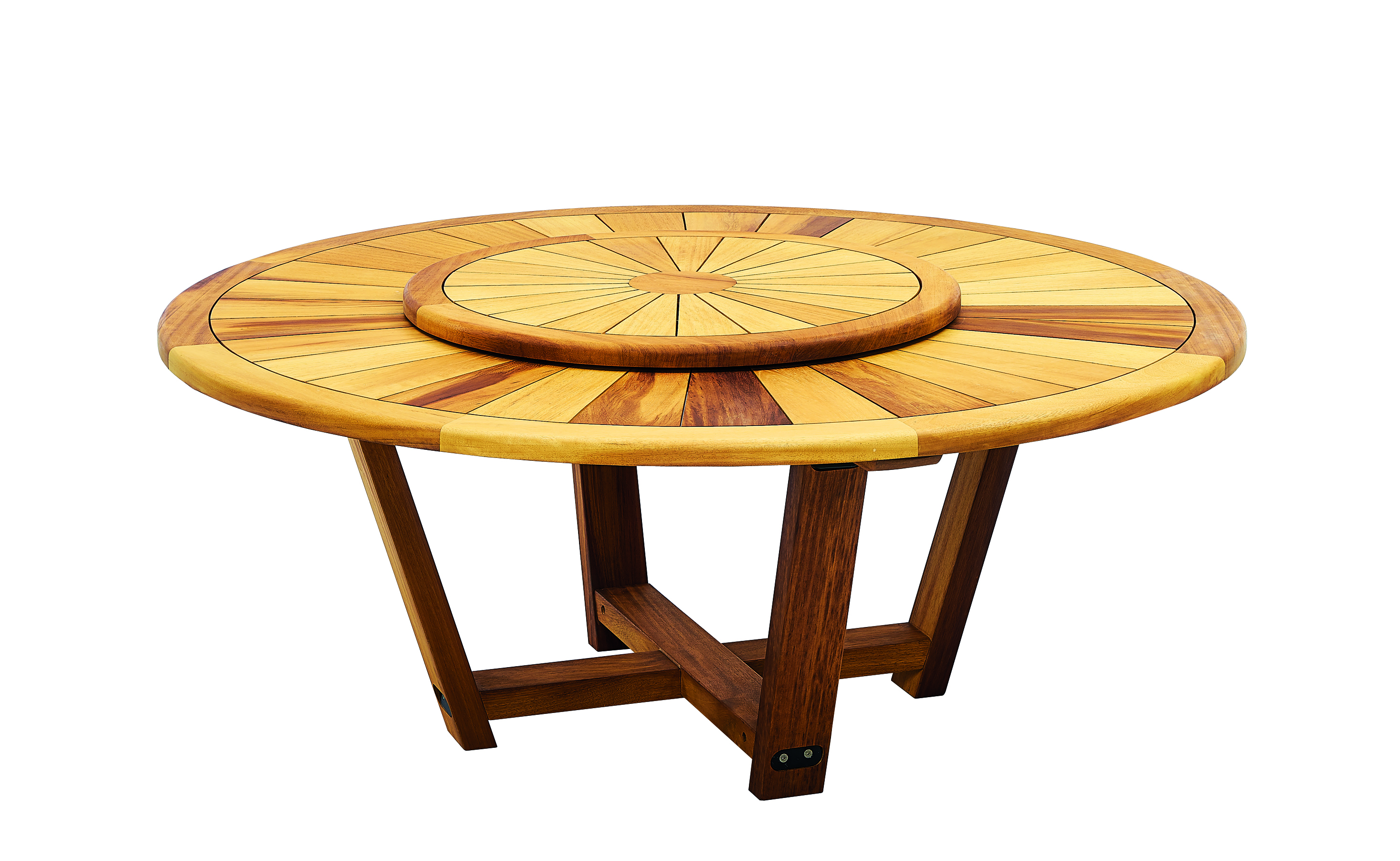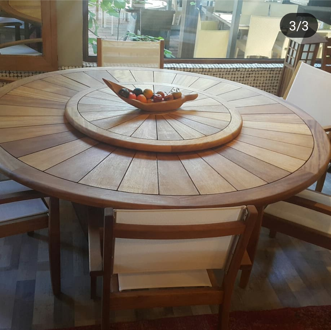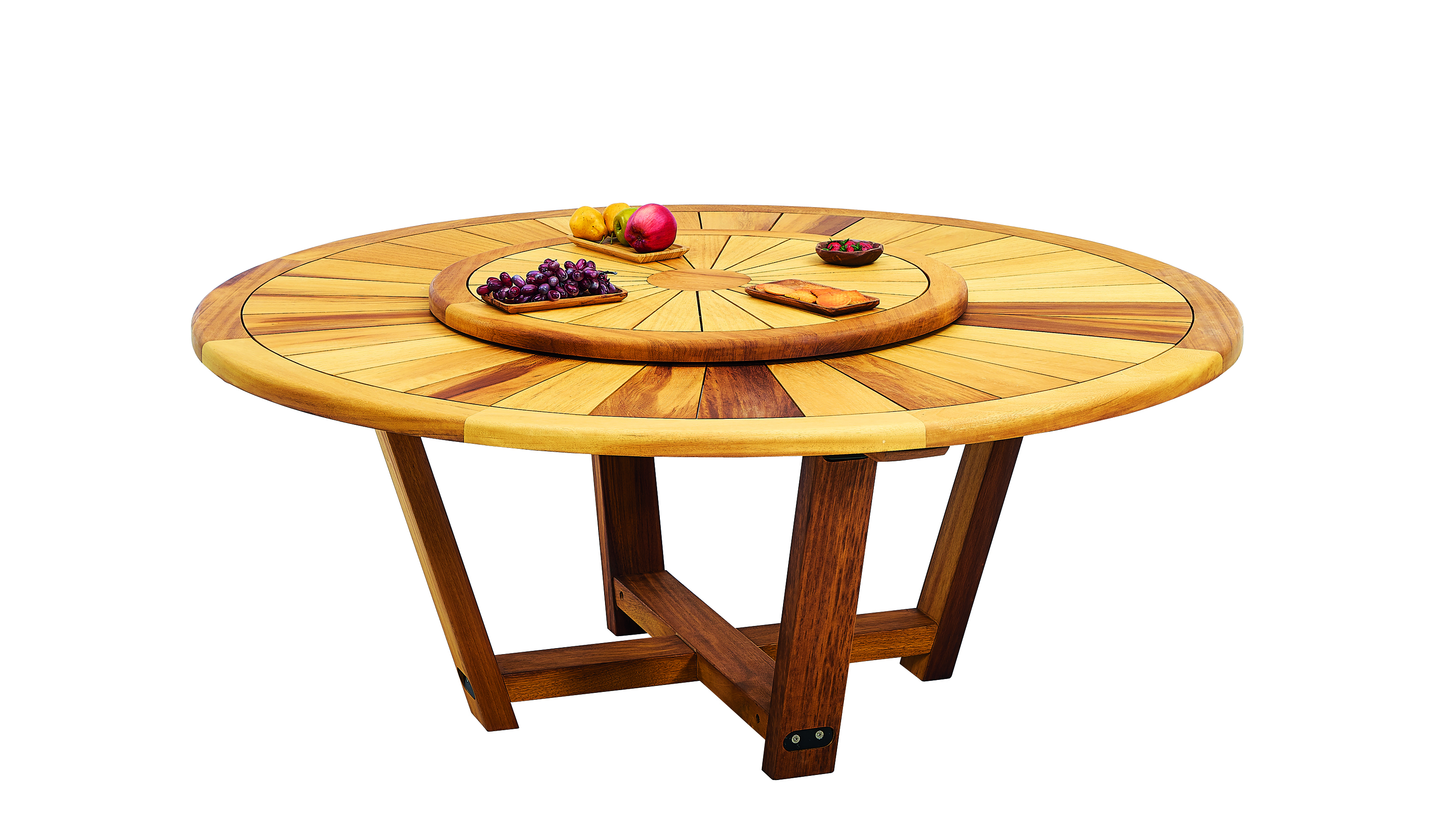 Orta bölümdeki döner servis tablası 360 derece dönebilmektedir ve masa etrafındakiler masa üstündeki yiyeceklere rahatça ulaşabilmektedir.