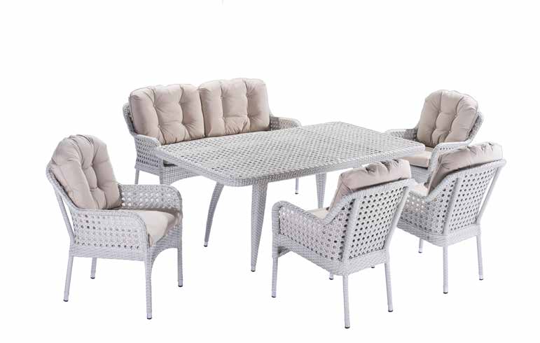Alüminyum rattan iskelet kullanılmıştır, pas yapmaz.
