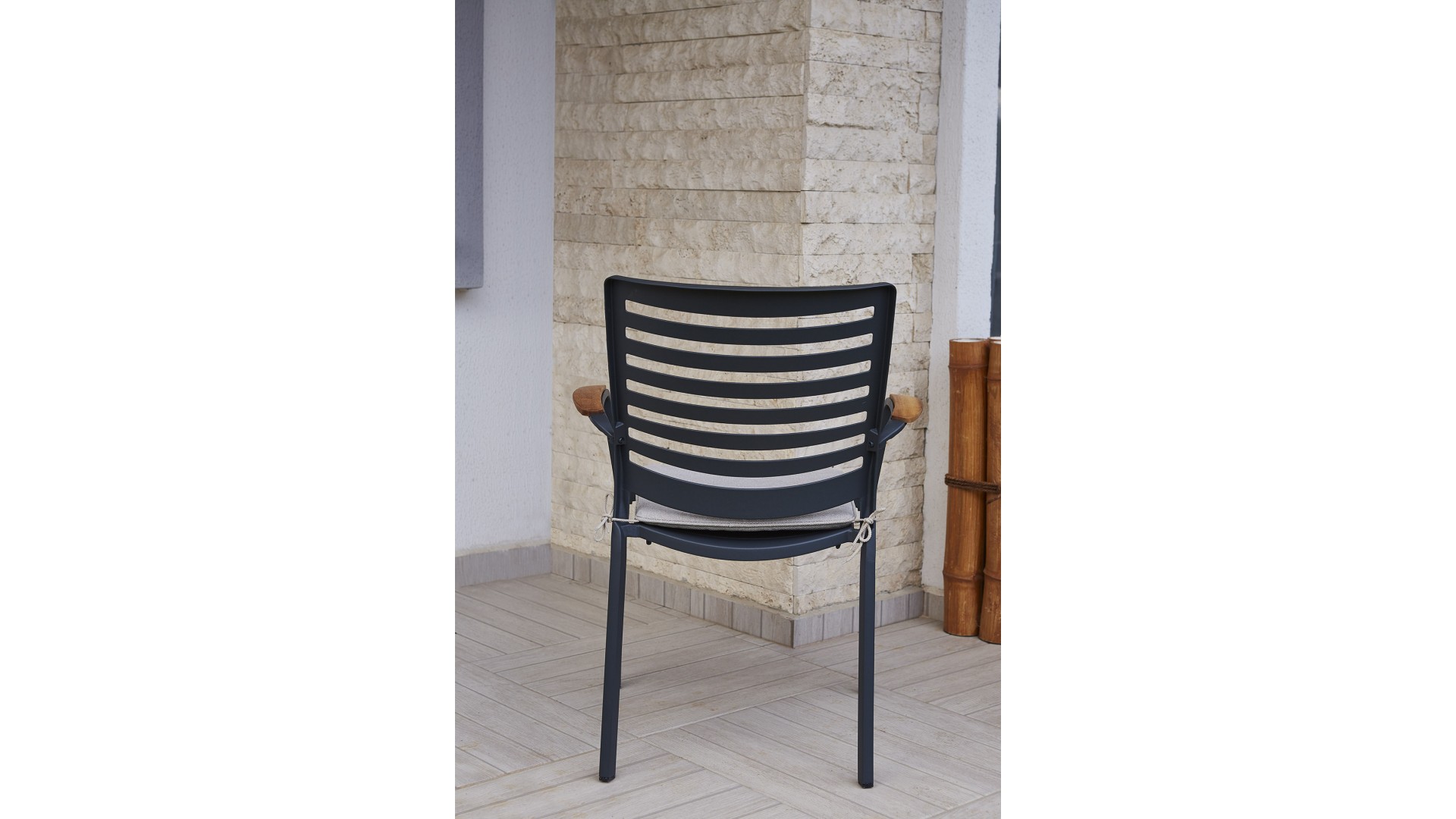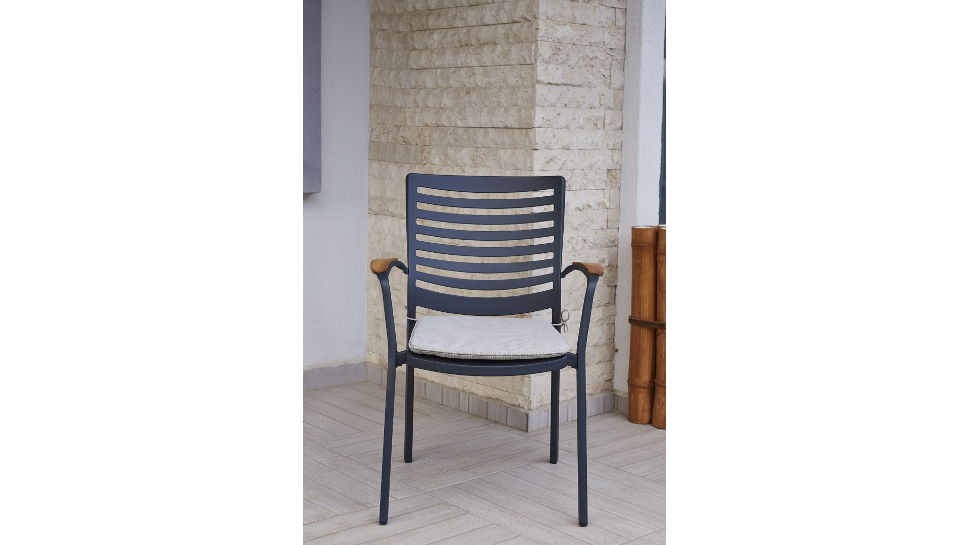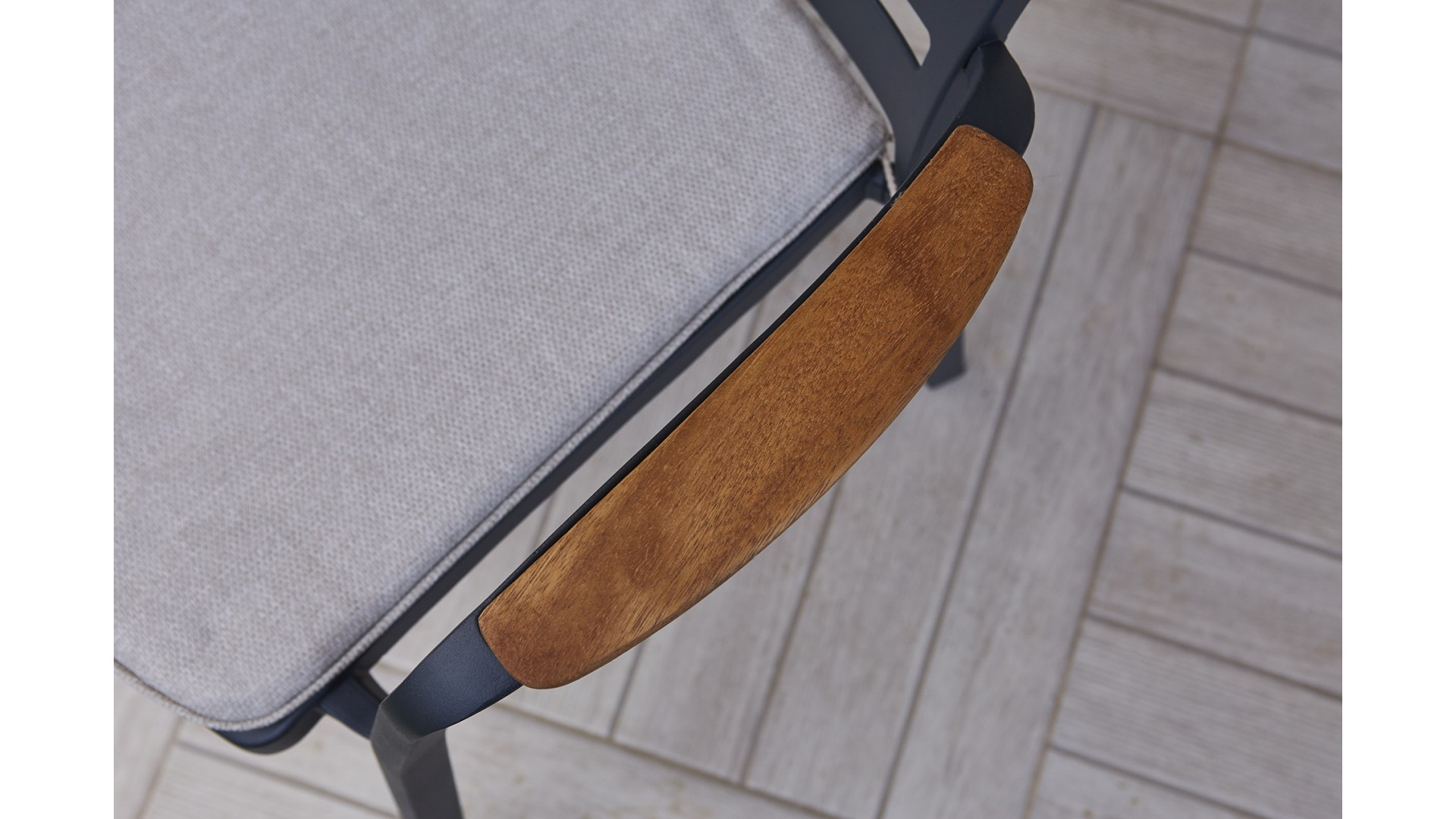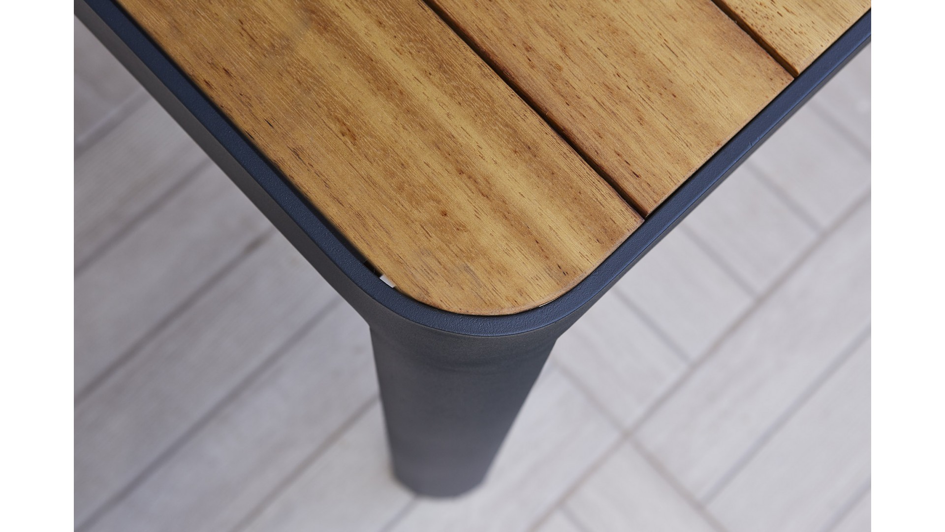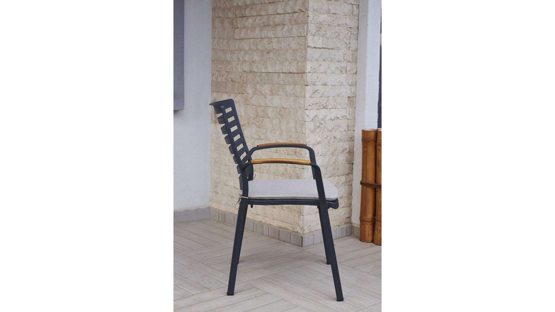 Alüminyum iskelet kullanılmıştır ve ahşap detaylarla şekillendirilmiştir, pas yapmaz.