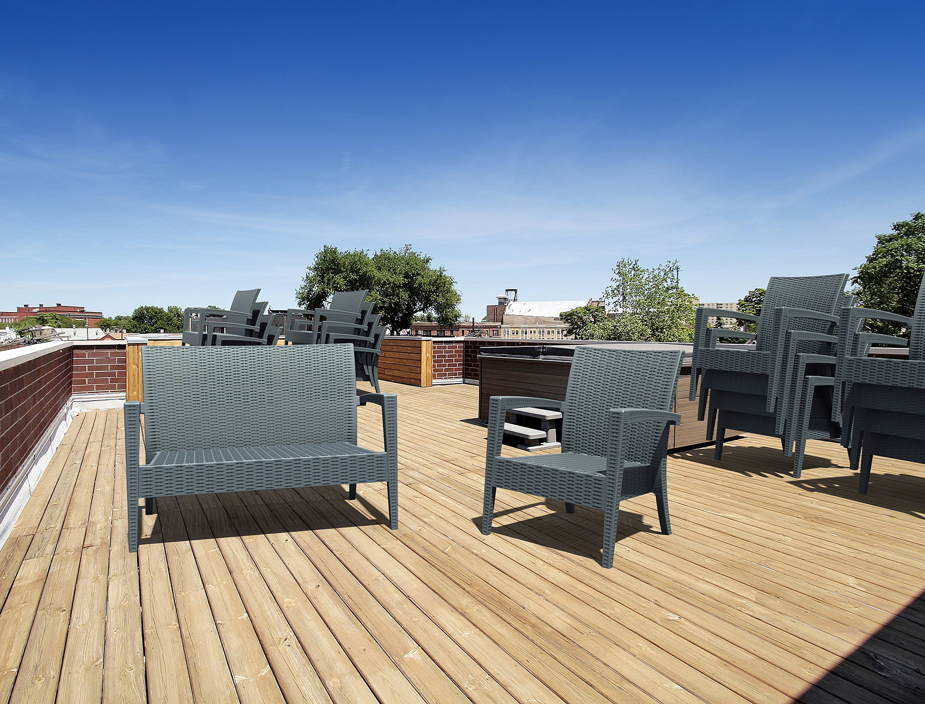 Kopolimer ve cam elyaf karışımından mamul Miami Tekli Koltuk, rattan efektli ve mat yüzeylidir.
