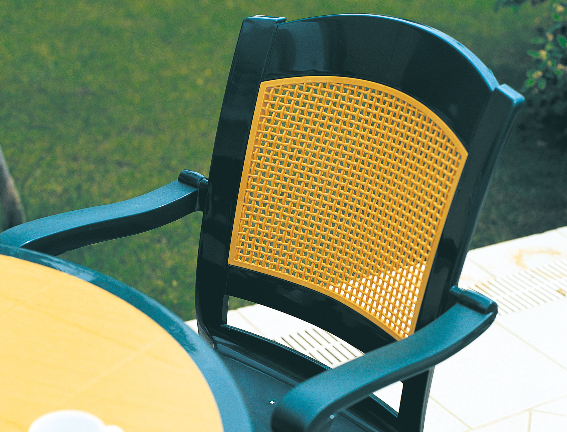 Özel kompaunt polipropilenden mamul olan Modern koltuk çift renklidir istiflenebilir, hava koşullarına dayanıklıdır ve antistatik özellik taşır.