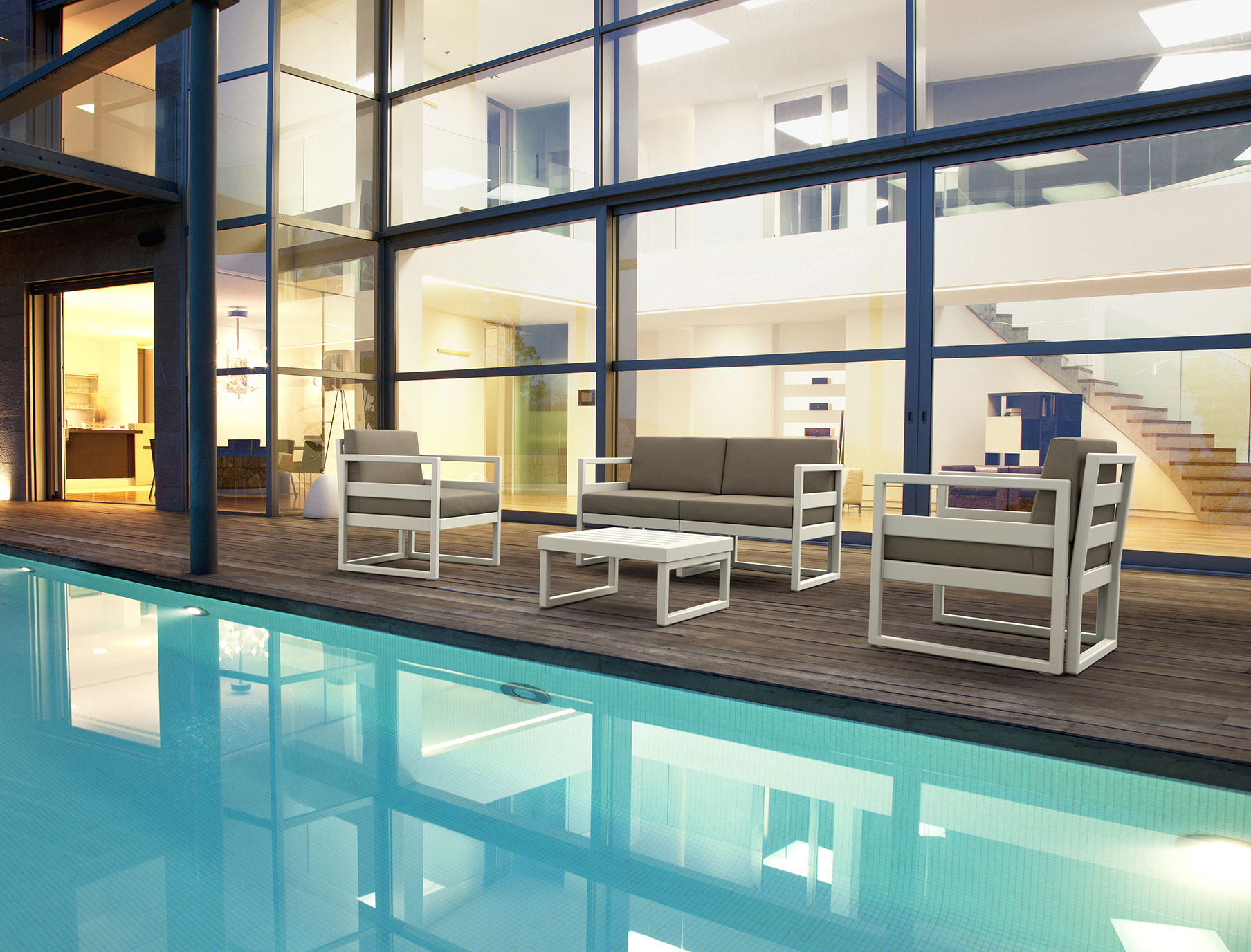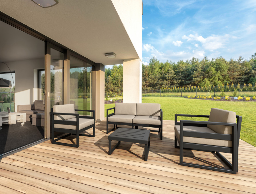 Kopolimer ve cam elyaf karışımından mamul Mykonos Lounge Set, tüm hava şartlarına uyumlu olup demontedir.