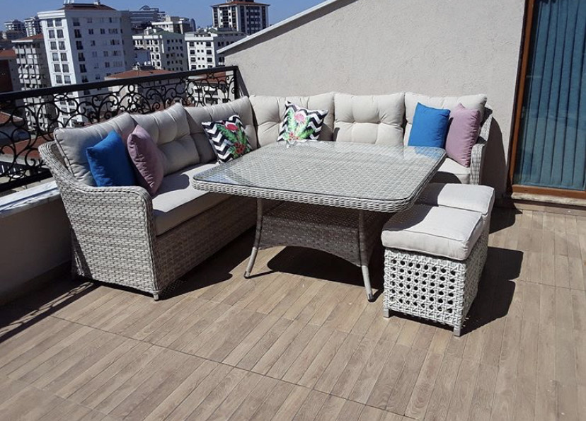 Alüminyum rattan iskelet kullanılmıştır, pas yapmaz.