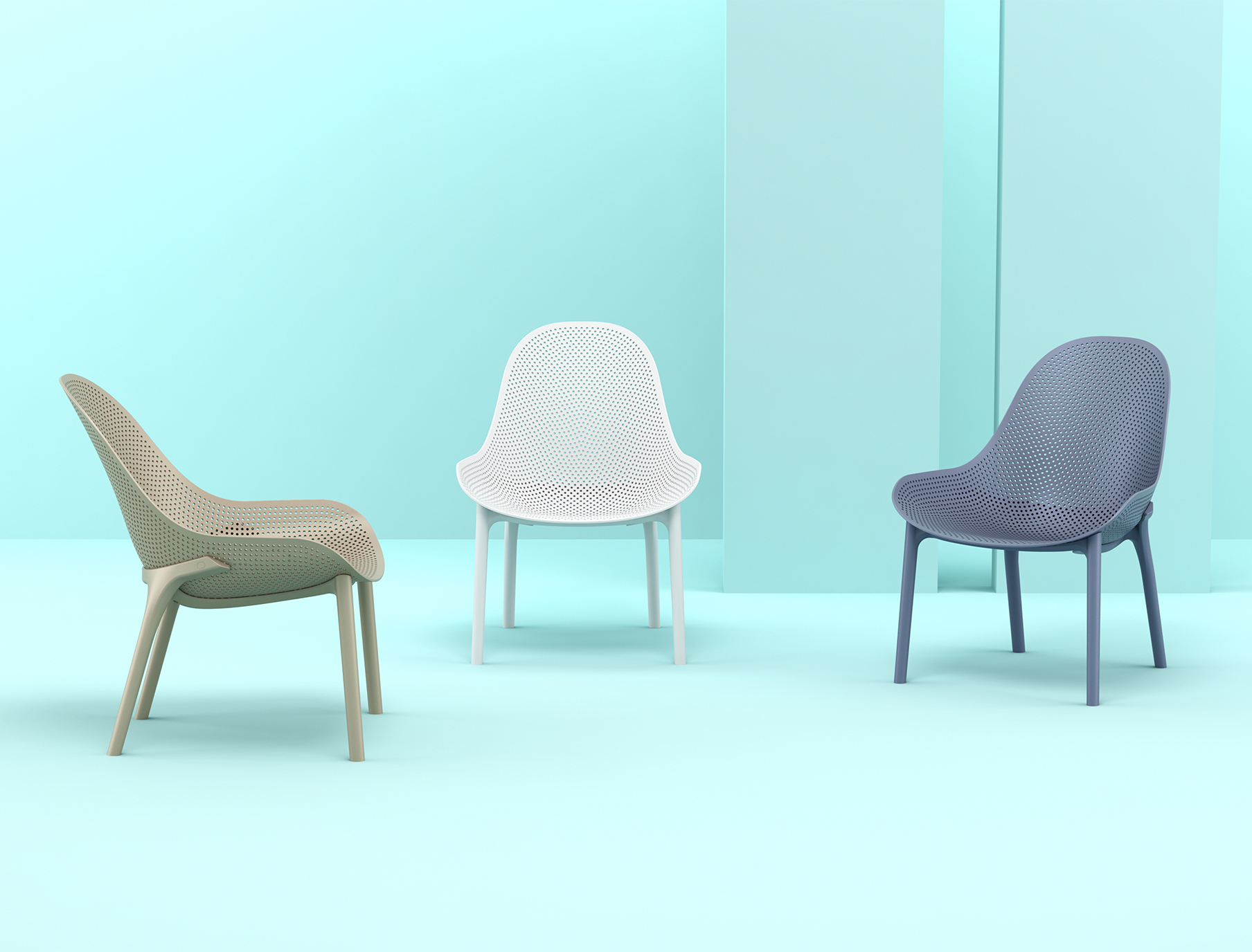 Polipropilen hammadde ve cam elyaf karışımından mamül ayak ve oturağın birleşiminden oluşan demonte koltuk Sky lounge, modern tasarımıyla geniş alanlarda kullanım kolaylığı sağlamaktadır.